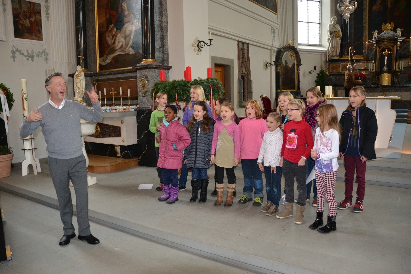 Nach den einleitenden Worten des Gottesdienstleiters, Othmar Scherrer, erzählte der zu Besuch weilende Samichlaus den in grosser Anzahl erschienenen Kindern und deren Eltern eine spannende Geschichte. Unter der Leitung von Kirchenchor-Dirigent Meinolf Kalkuhl umrahmte der Ad hoc-Chor der Kinder mit kräftigen Stimmen und pfiffigen Liedern den Gottesdienst musikalisch.